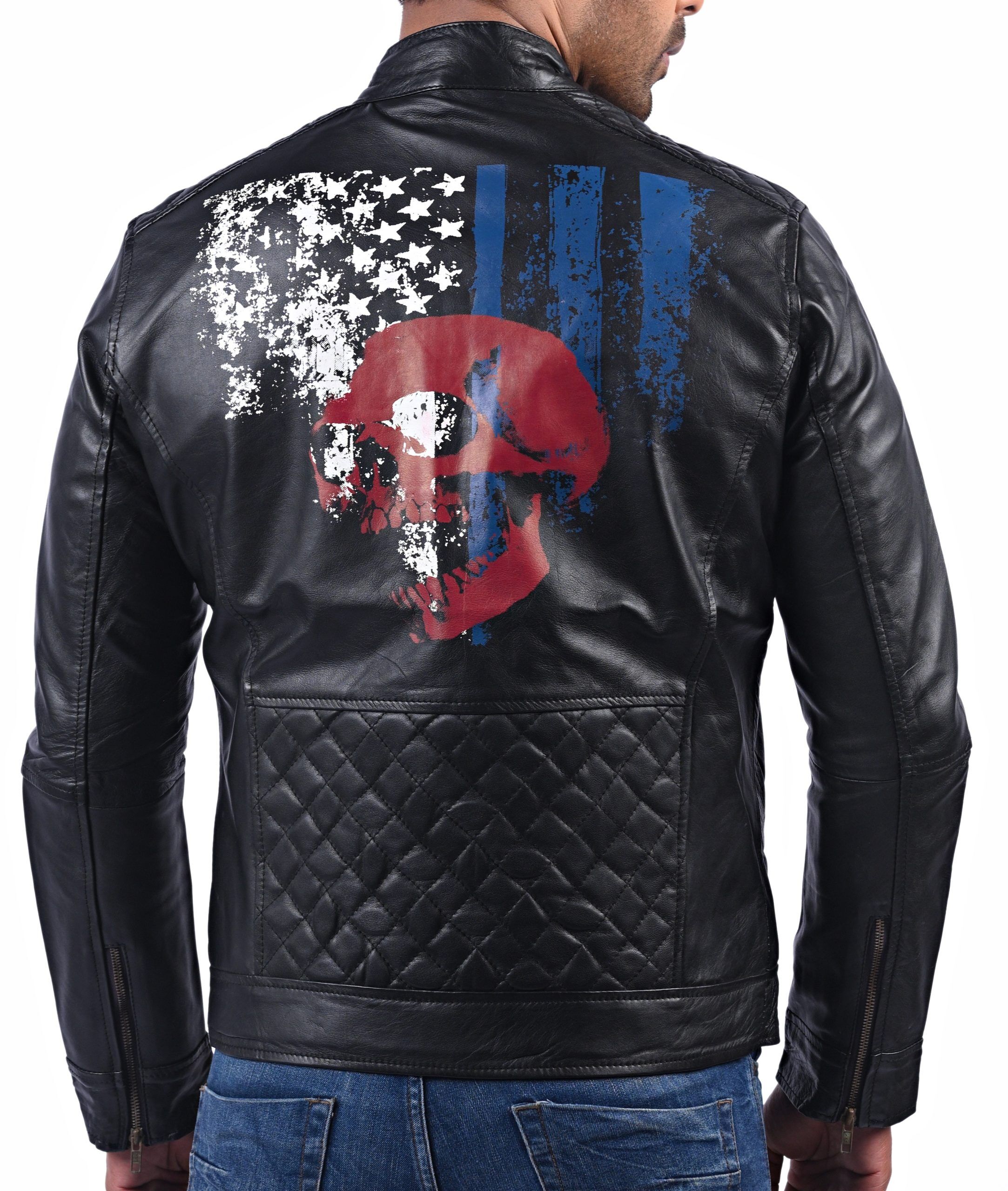 American Flag Skull Print Leather Jacket For Men’s