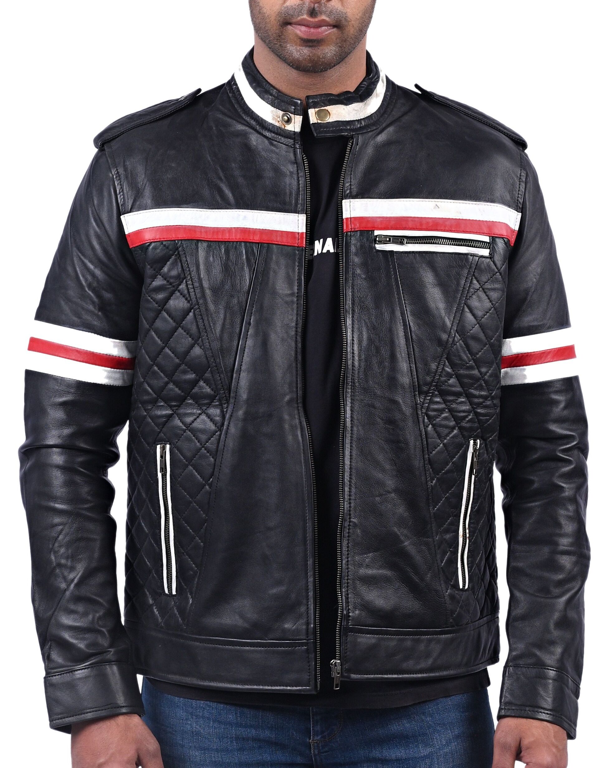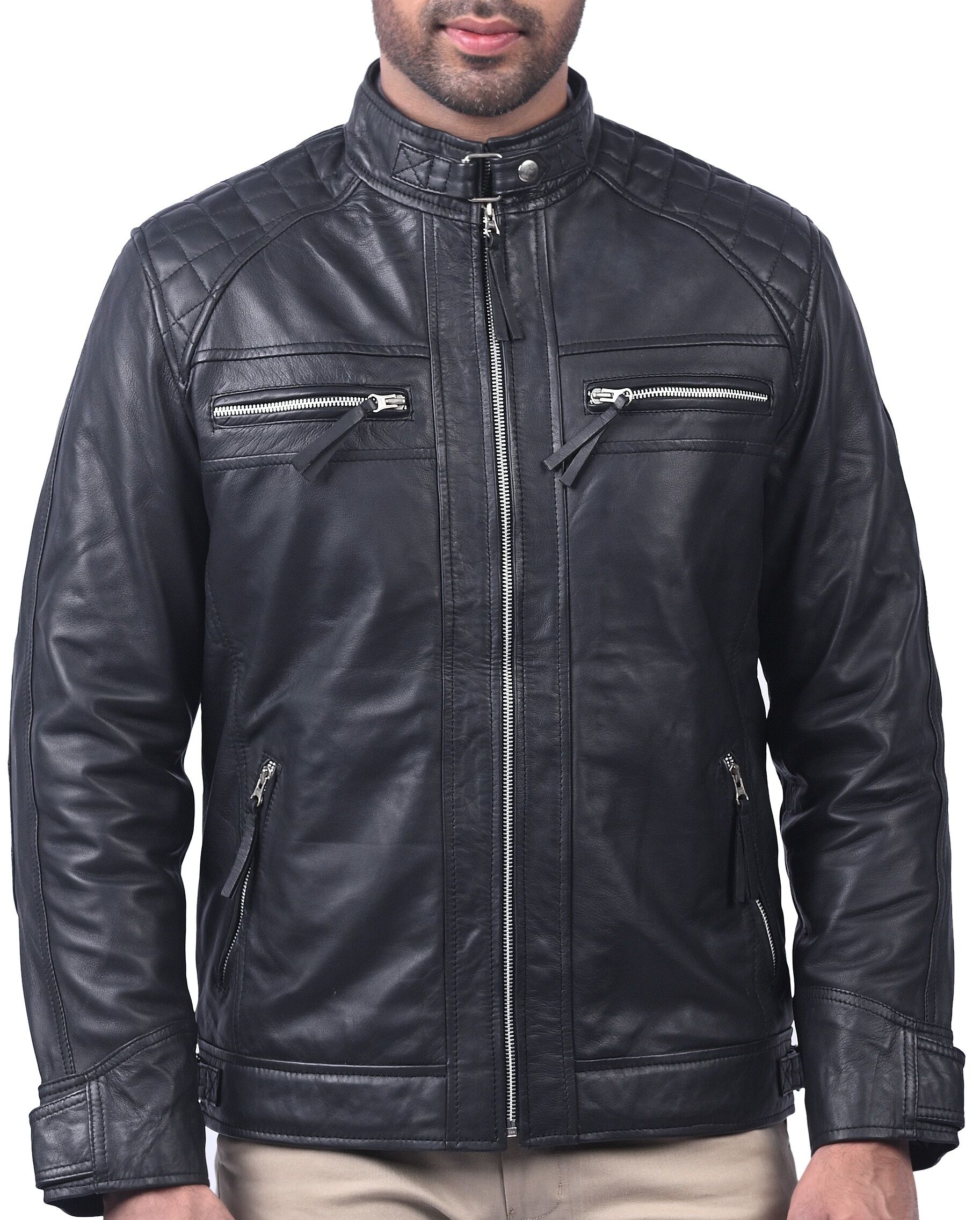 Black Fashion Quilted Leather Jacket For Men