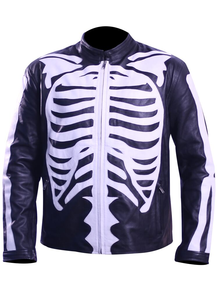 Skeleton Leather Jacket For Mens Motorcycle Bikers Costume