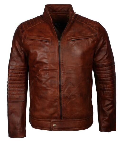 Brown Leather Cafe Racer Jacket