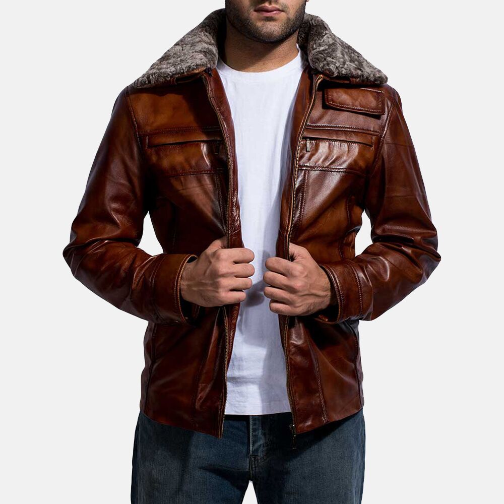 Mens Chocolate Brown Leather Jacket With Fur