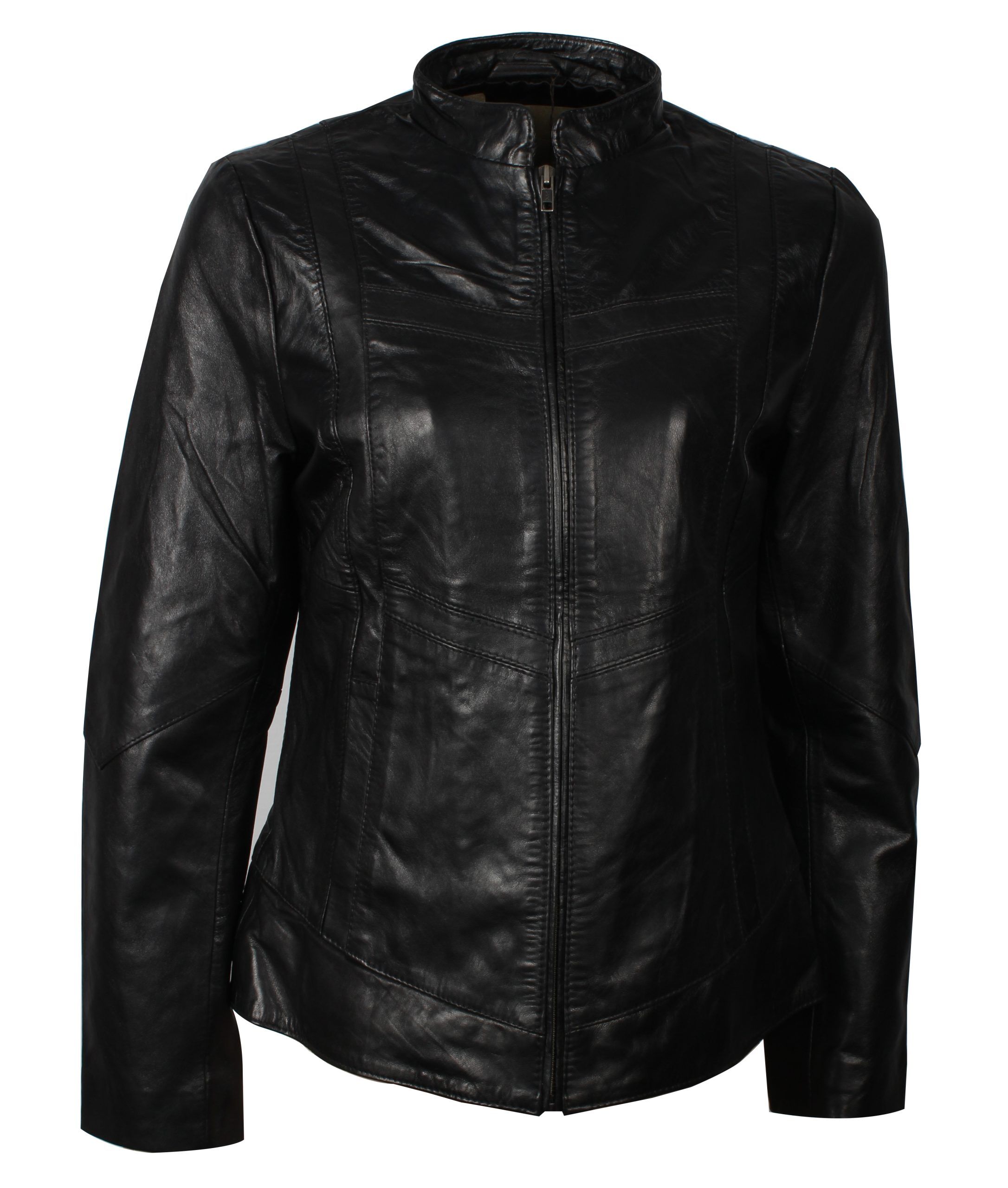 Women’s Real Biker Leather Jacket-Casual Zip Up Style